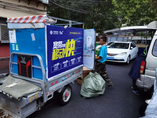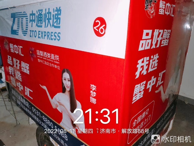 山東攬勝廣告傳媒有限公司和蟹中匯合作快遞車車體廣告!